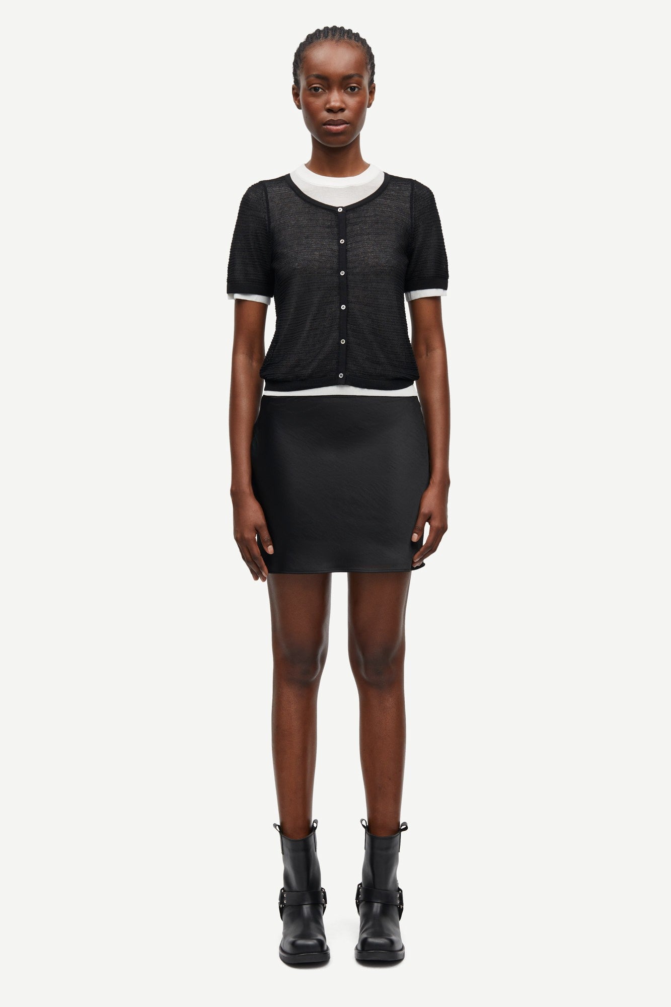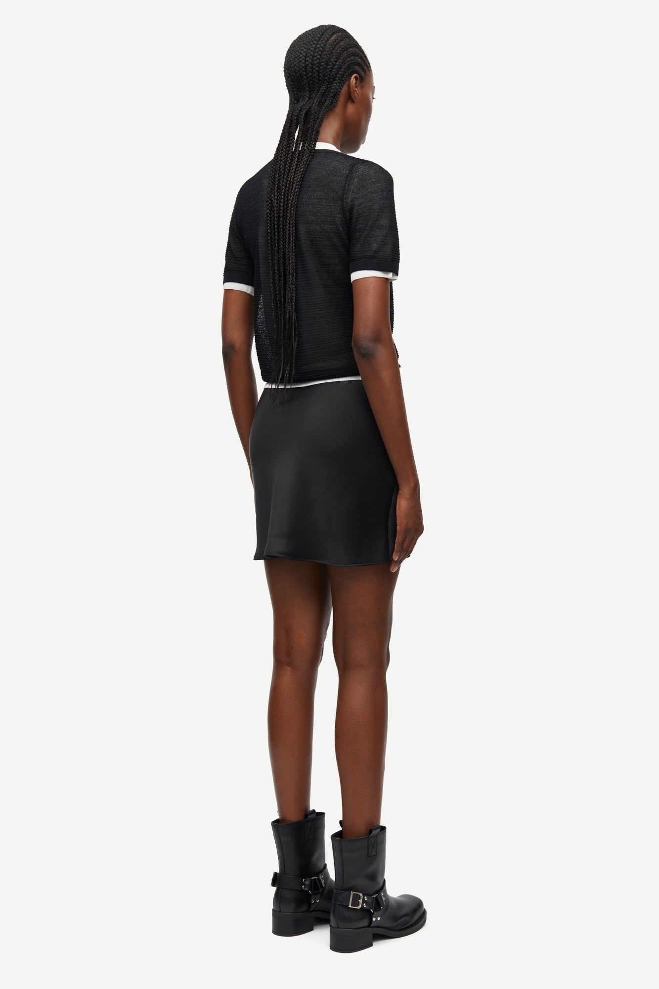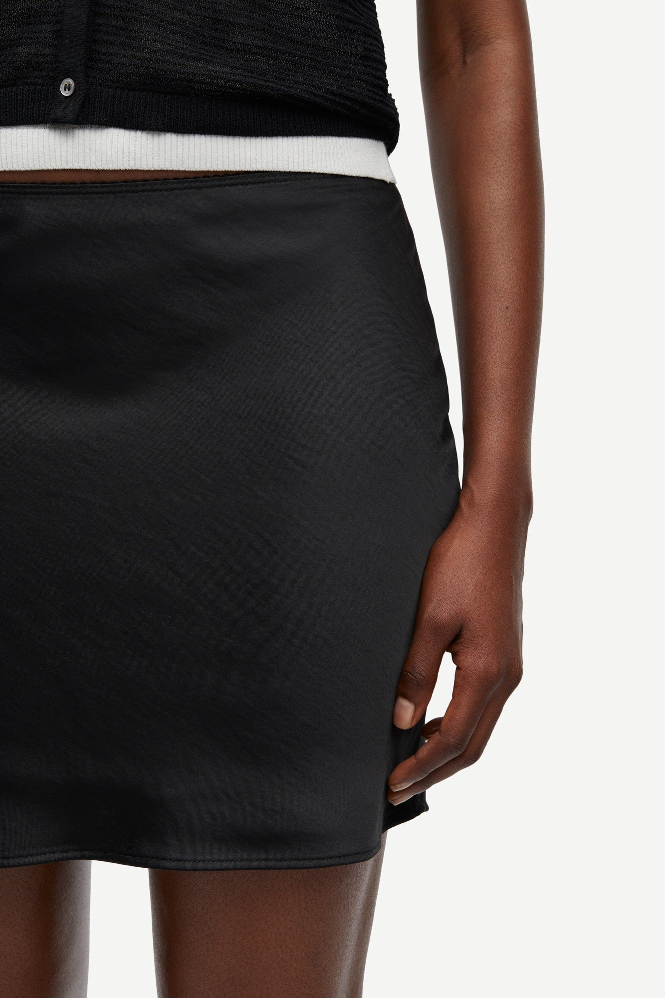 חצאית סאטן מיני לנשים מבית המותג סמסו סמסו. בגזרה צמודה, עם גומי דק במותן.