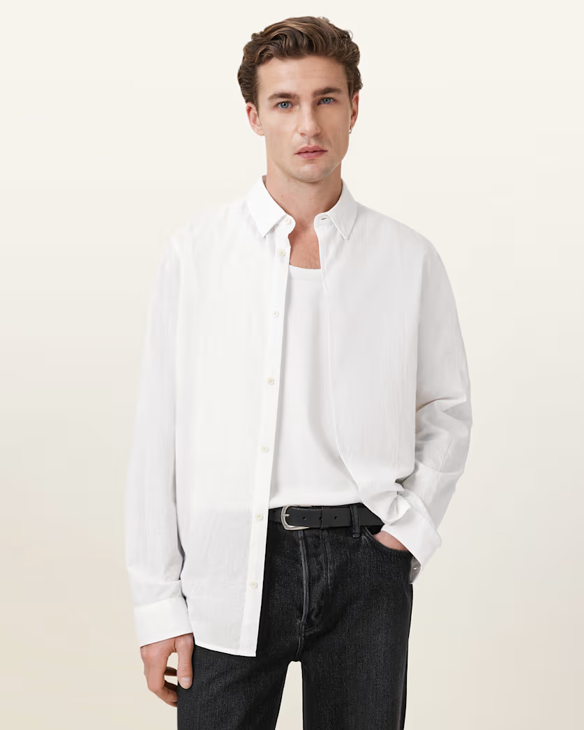 חולצה מכופתרת ארוכה לגברים מבית המותג אולסיינטס. בגזרה קלאסית, עם כפתורי סגירה לכל האורך, צווארון קלאסי ושרוולים ארוכים.
