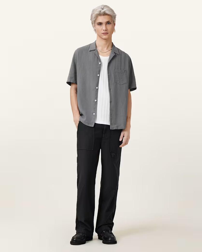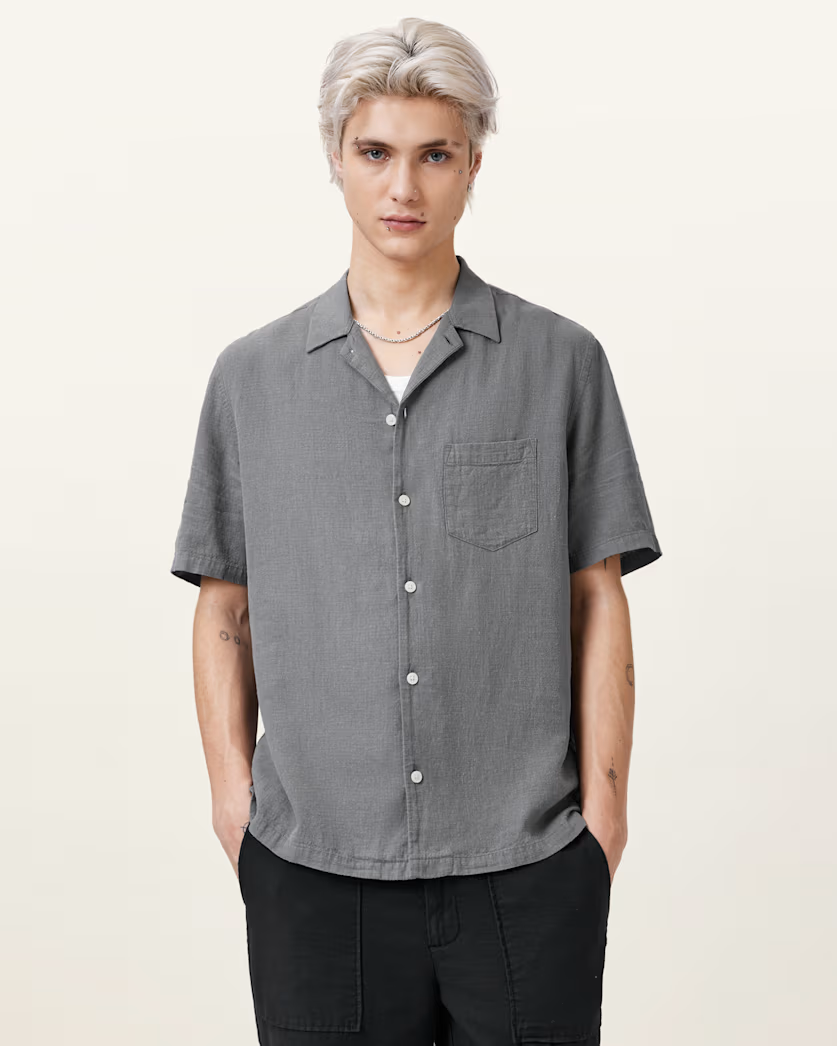 חולצה מכופתרת קצרה לגברים מבית המותג אולסיינטס. בגזרה משוחררת, עם כפתורי סגירה לכל האורך, צווארון שטוח ושרוולים קצרים.