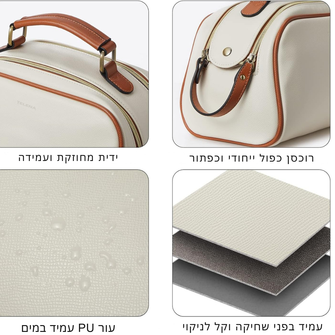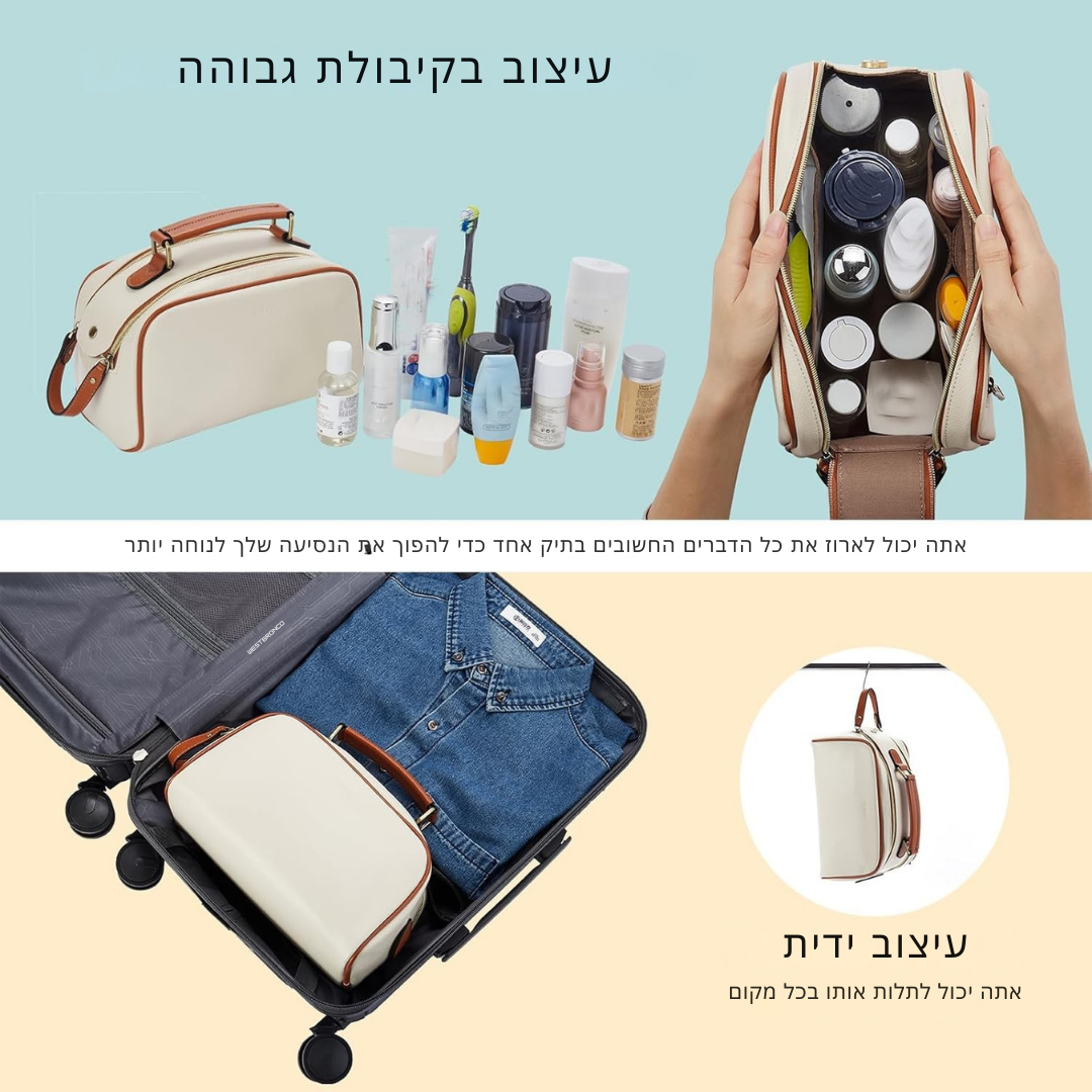 ™Alviera | תיק טיפוח לנוסעים – עור PU, קיבולת גדולה, עמיד במים, רצועת תליה