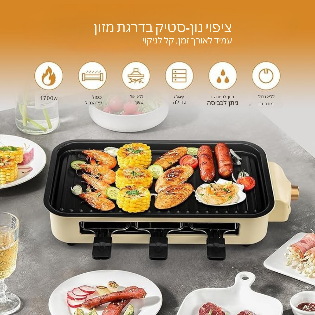 תכונה מיוחדת: ניתן לשטיפה במדיח כלים, משטח נון-סטיק, בקרת טמפרטורה