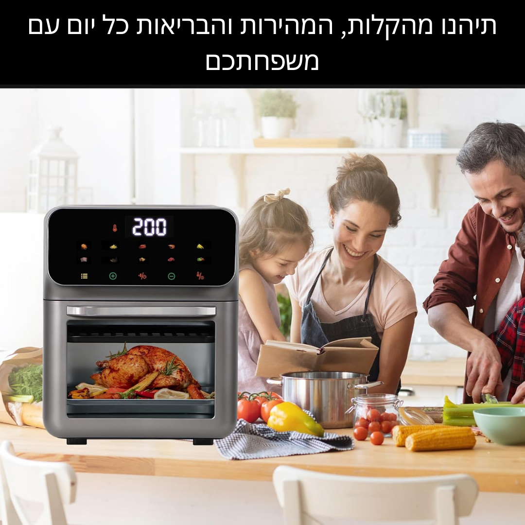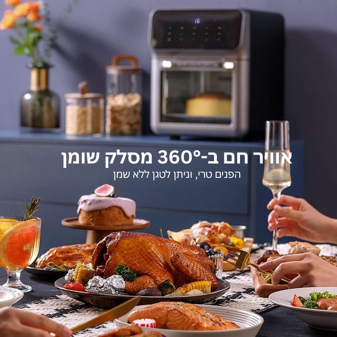 ™Elvrix | טוסטר אובן משולב עם אייר פרייר 10 ליטר – מסך מגע ובישול 360°