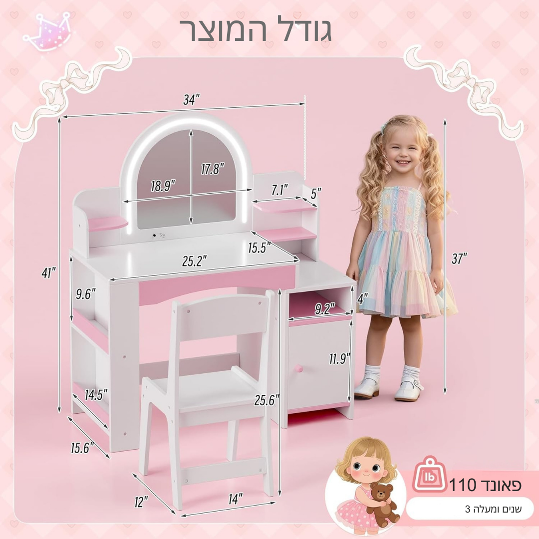 המראה המואר והעיצוב האלגנטי עושים אותו לתוספת יפה לכל חדר של ילדה