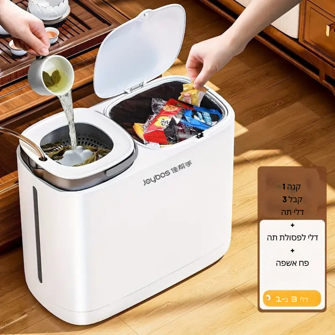 ™Leafora | פח שאריות תה – הפרדה בין יבש לרטוב, קל לניקוי, עם מכסה חוסך מקום