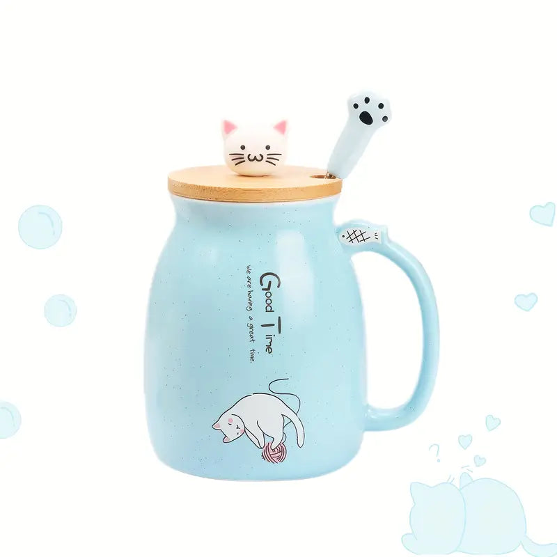 ™Mavira | ספל חתול קאווי – כוס קרמיקה 13oz עם מכסה וכפית