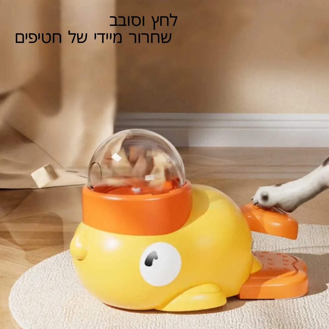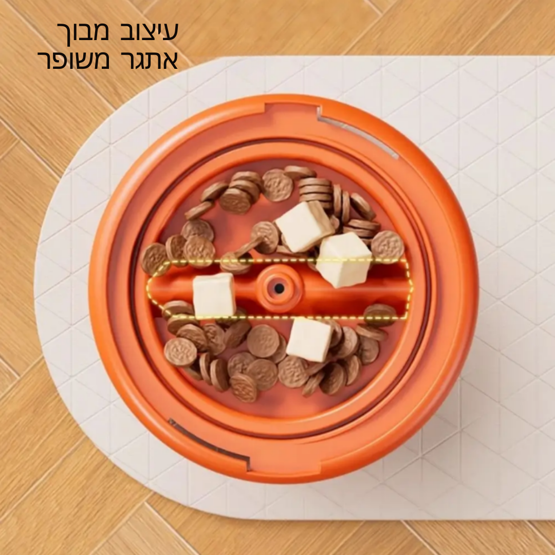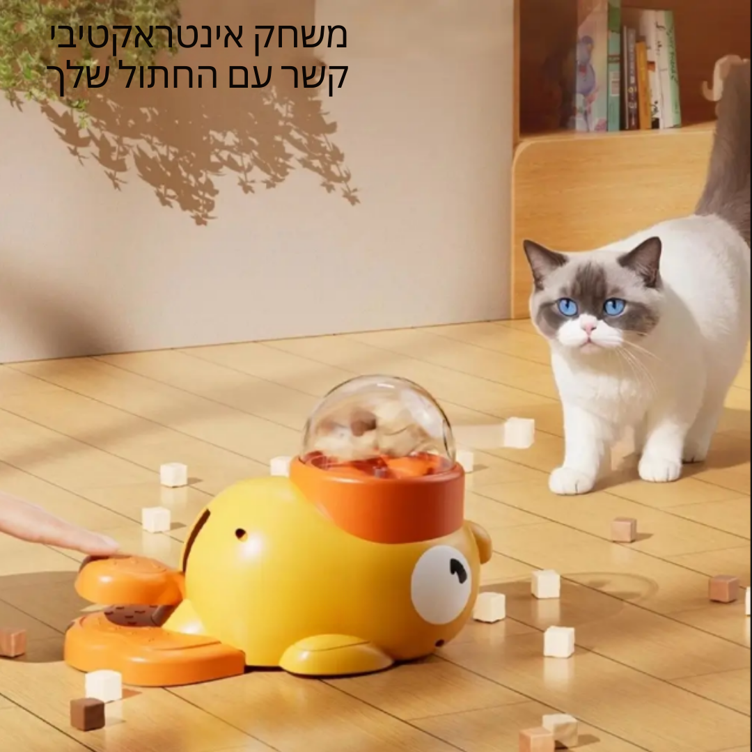 פונקציות: מפיץ חטיפים אינטראקטיבי מסתובב, גירוי מנטלי, ושליטה במנות.