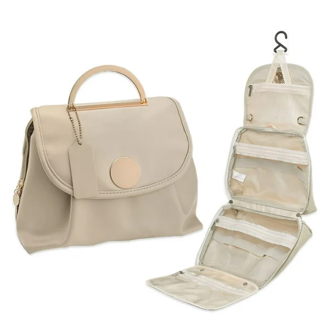 ™Soletta | תיק טיפוח לנוסעים – דגשי זהב, תאים מרווחים, עיצוב עם וו