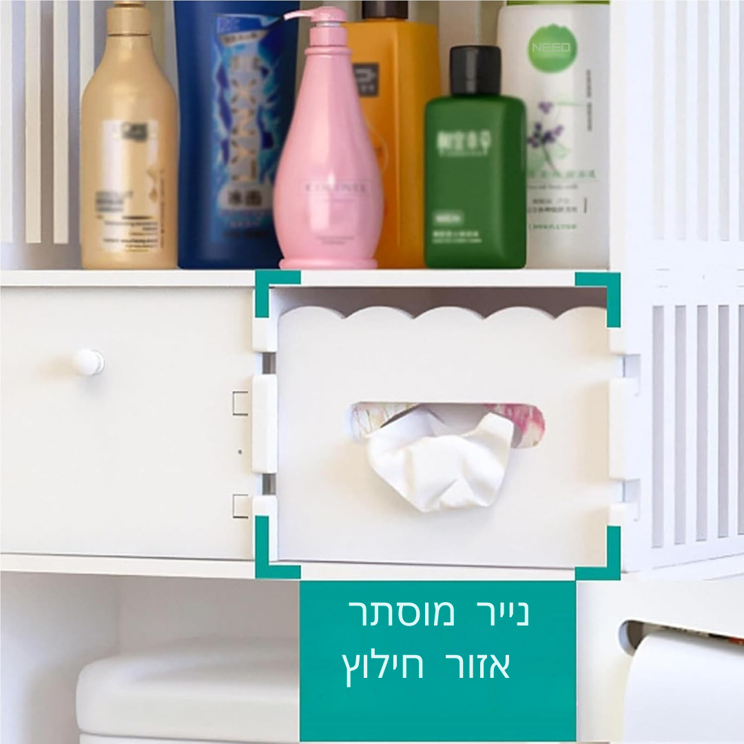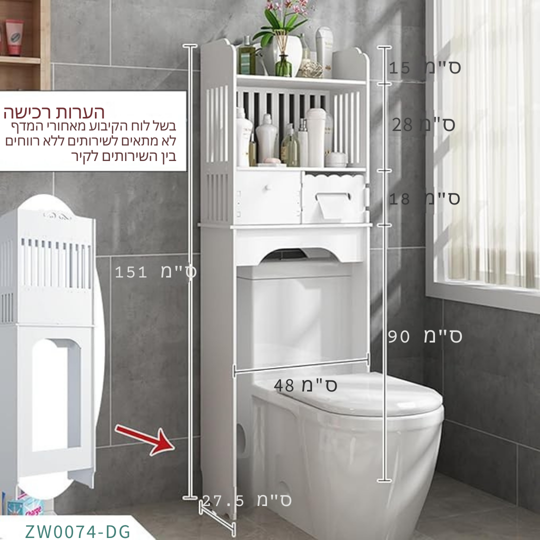 ™StorEase | ארון אחסון לאסלה – מארגן חסכוני במקום