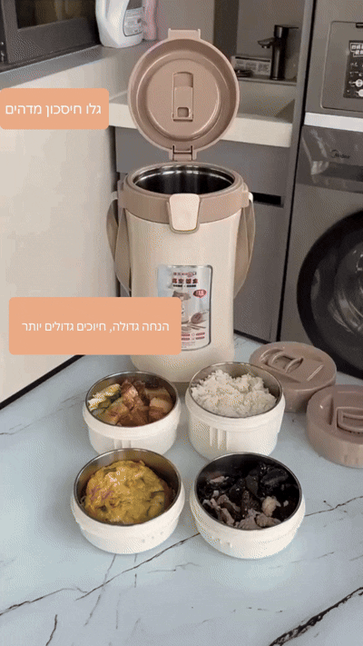 שמירת טמפרטורה: שומר על חום המזון למשך 6 שעות בטמפרטורה של 65 מעלות צלזיוס