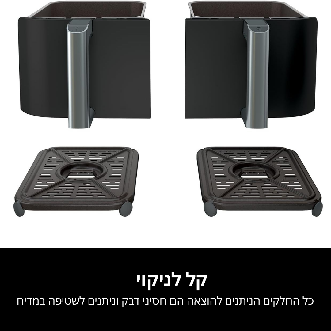 6 פונקציות בישול: מקסימום פריכות, טיגון באוויר, צלייה, אפייה, חימום מחדש, ייבוש. עד 75% פחות שומן מטיגון (נבדק עם צ'יפס שנעשה בעבודת יד).