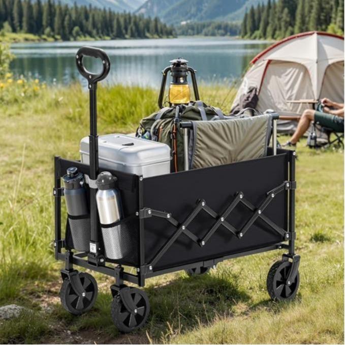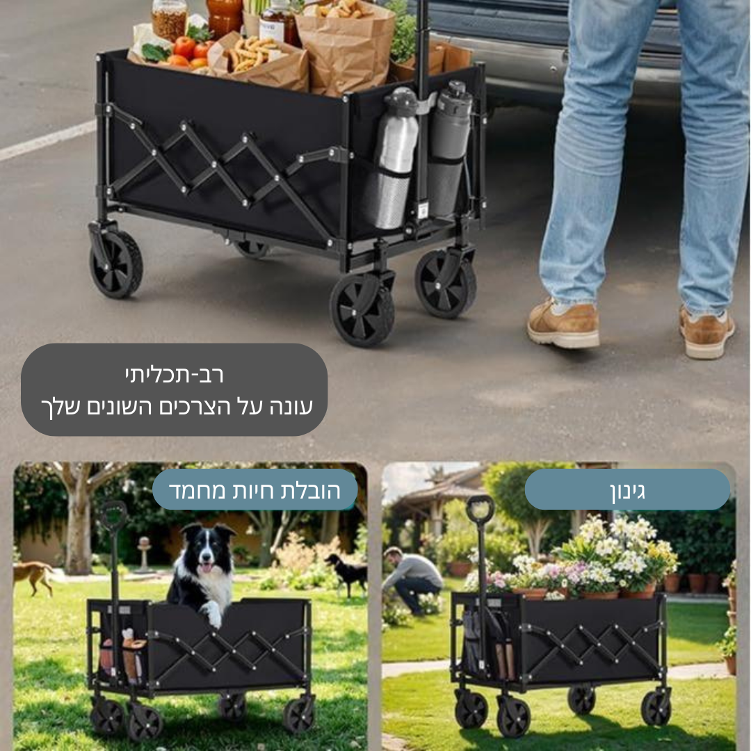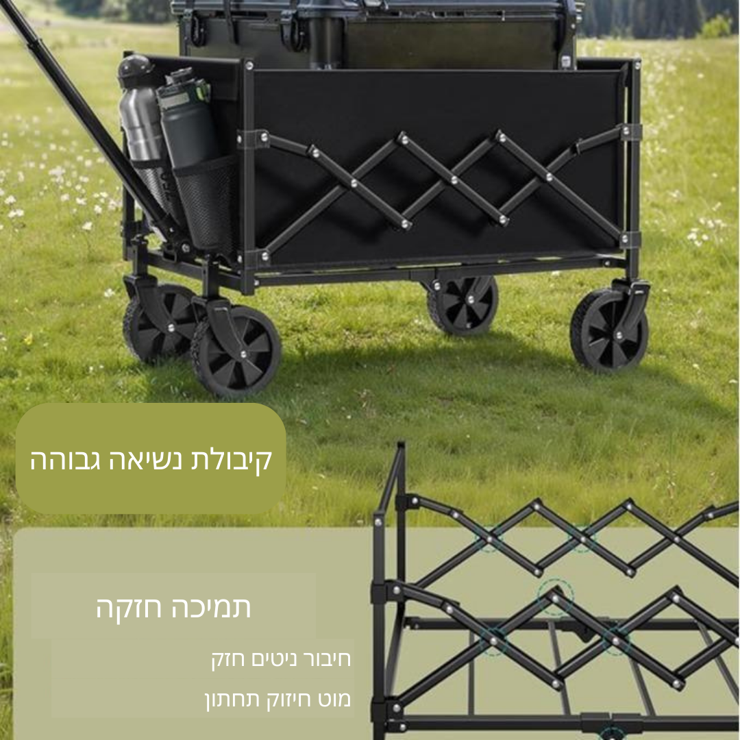 ™Zavron | עגלת קמפינג מתקפלת כבדה – עגלת גינה עם ידית ו-4 גלגלים, קיבולת 475 ליברות